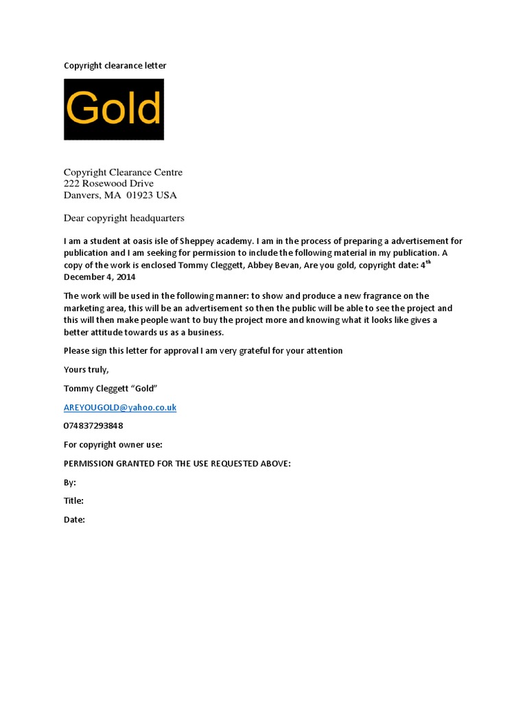 Copyright Clearance Letter Pdf